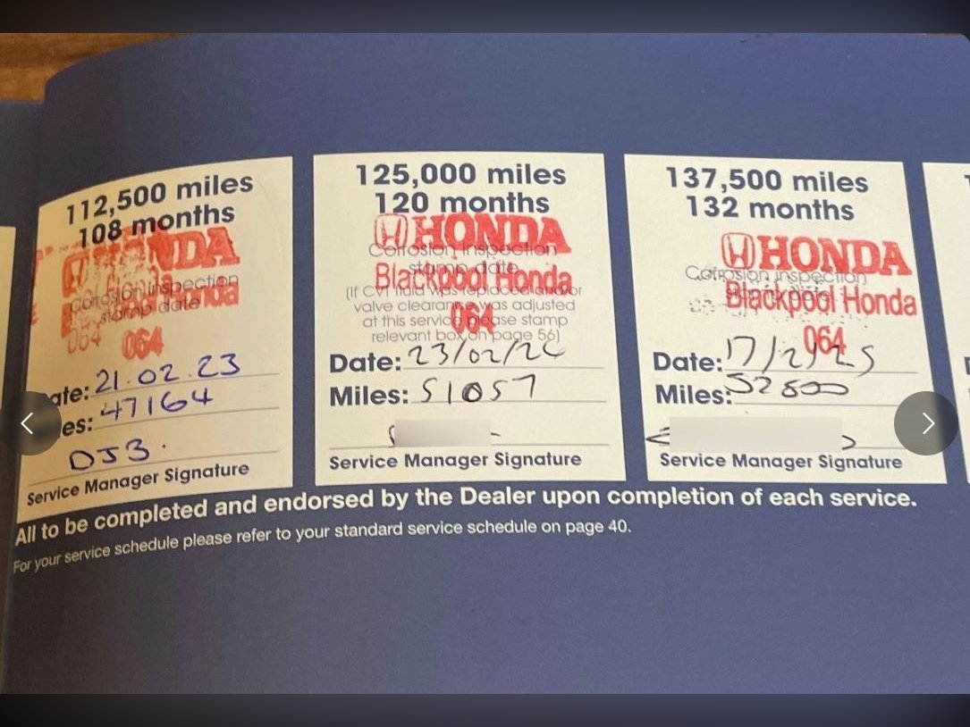 2 Owners From New Last Owner Since 18 Months Old Full Honda Service History All Done By Same Honda Dealer Since New,Service Stamps At 7241 - 11918 - 19030 - 26557 - 32452 - 37674 - 39500 - 43531 - 47164 - 51057 - 52800 Miles.2 Keys.£35 A Year To Tax.Climatic Control,Radio Cd Aux In,Traction Control,Trip Computer,Rear Parking Sensors,Quick Clear Windscreen,Abs,Remote Central Locking,Electric Windows,Electric/Heated Mirrors,Height Adjustable Drivers Seat,Steering Wheel Rake And Reach Adjust,Cloth Sports Seats Black/Blue,Rubber Overmats,Fold Flat Rear Seats,Isofix,Child Door Locks,Child Window Locks,Top Tether,Full Size Spare Wheel.Boot Light..............................Like all our cars will be supplied with 1 Years M.O.T Service due and 3 months extendable warranty.Please feel free to read our Google customer reviews which we are very proud of before deciding where to look for your new car.